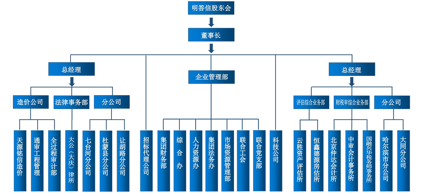 以“计”为公司业务核心,兴服务对象事业之“本”。集团实行平行阶梯组合式的灵活管理机制,集团所属会计师事务所、税务 师事务所 、资产评估公司 、工程咨询公司 、招标代理公司、工程造价司法鉴定所、工程服务公司、工程监理公司  、测绘公司、文 化传媒公司、科技开发公司 、法务部、转向培训中心,可在不同领域提供全方位、一条龙式服务。