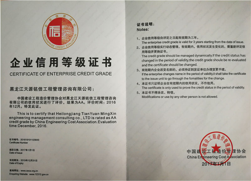 企业信用等级证书