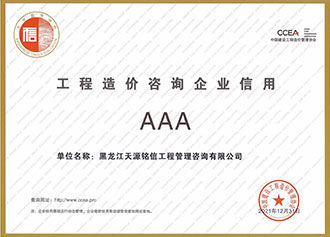 黑龙江天源铭信工程管理咨询有限公司经过多年不懈的努力,获得了各级单位的好评。2008~2014年被大庆市工商局评定为市级“守合同重信用”单位;2009~2014年被黑龙江省工商局评为省级“守合同重信用”单位。2014~2015年被国家工商行政管理总局评为***“守合同重信用”单位。在2009年被大庆市建设局评为十个诚信单位之一;同年被黑龙江省住房和城乡建设厅评为“新中国成立60周年黑龙江省建设系统**工程造价咨询先进企业”;同时成为黑龙江省建设工程造价咨询行业自律公约签约单位;黑龙江省建设工程造价员培训教材《工程量清单计价案例分析》参编单位,2017年通过公司质量管理体系认证;2021年通过工程造价咨询企业信用证明AAA等级证书。